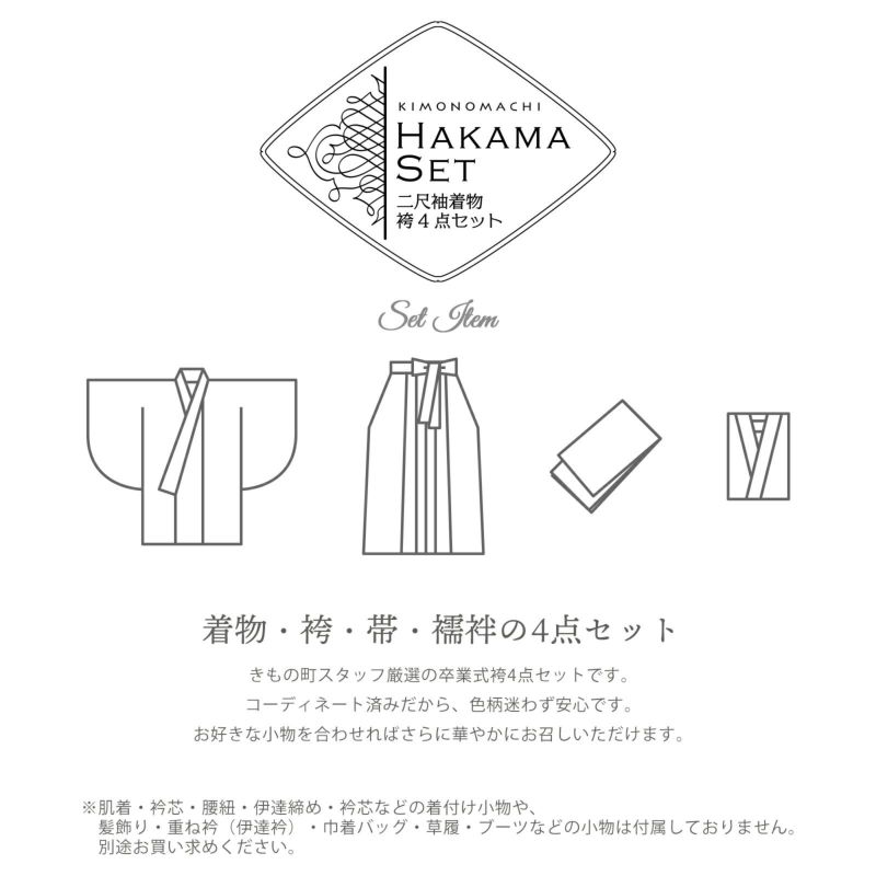 【商品内容】二尺袖着物・袴・袴下帯・襦袢の4点セット