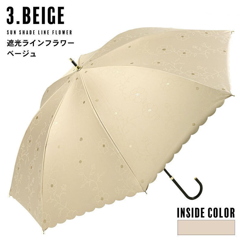 3. 日傘 長傘 晴雨兼用「遮光ラインフラワー(2413)」遮光 遮熱 撥水 はっ水 防水 UVカット PU加工 一級遮光 女性用 レディース women's プレゼント ギフト 母の日 誕生日【メール便不可】ss2512wkm10