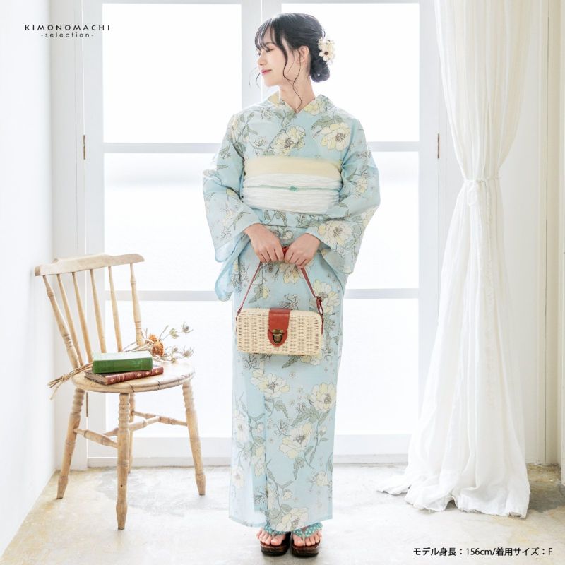 浴衣 レディース 女性浴衣単品 「アリスブルー アネモネ」Fサイズ