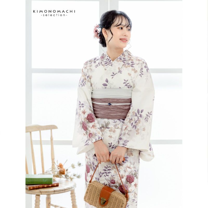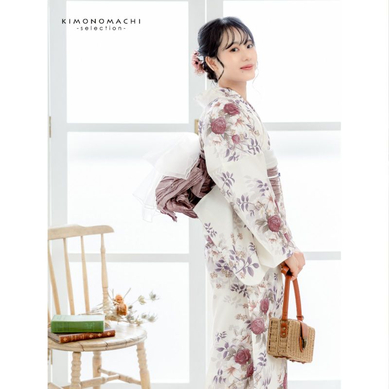 5. 浴衣 レディース 女性浴衣単品「ローズアンドリリー アイボリー」ポリエステル浴衣 プレタ浴衣 お仕立て上がり浴衣 大人浴衣 Fサイズ 女性用 女性浴衣 ゆかた【メール便不可】