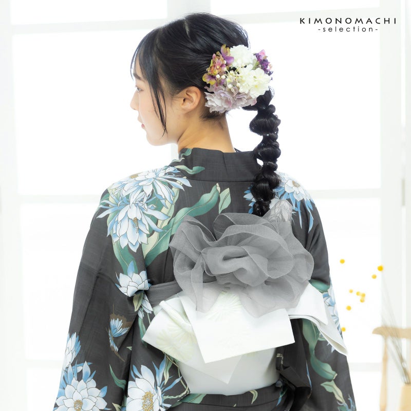 通常の帯結びにプラスして、スタイリングをより華やかに。