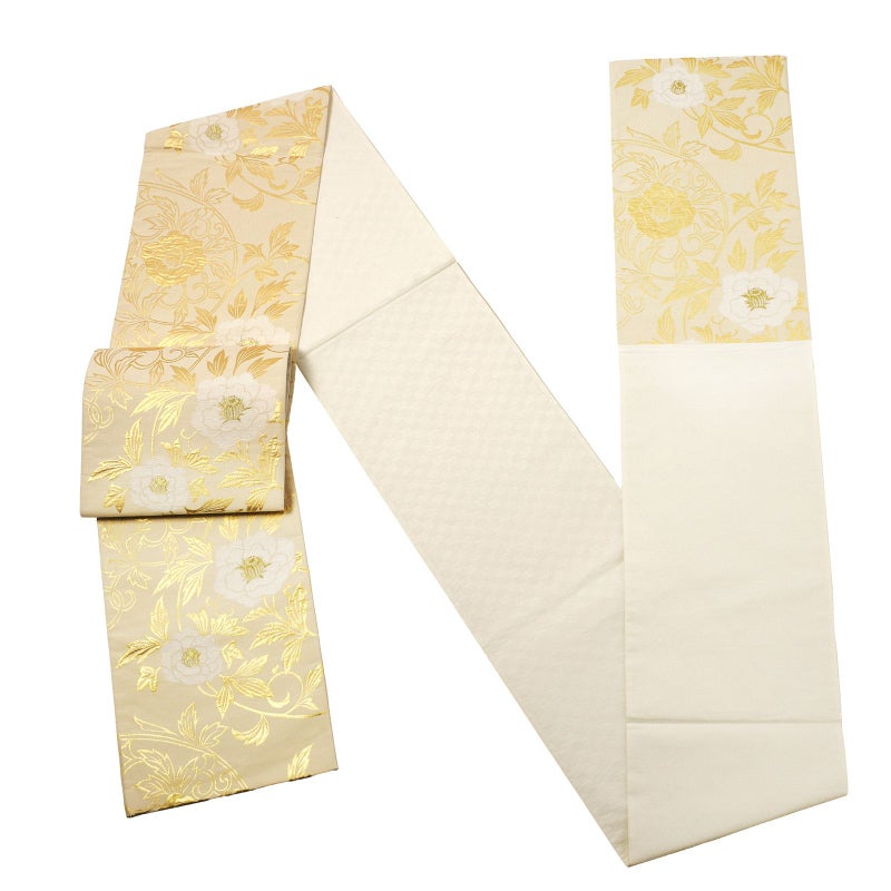 3. 振袖 袋帯 単品「生成り色地、白×金 牡丹唐草」日本製 お仕立て上がり 振袖用 袋帯 お仕立て済 振袖帯 結婚式 成人式 フォーマル【メール便不可】