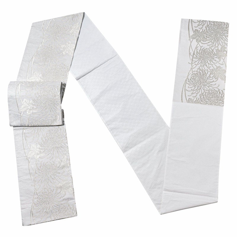 振袖 袋帯 単品「白地 白銀 糸菊」六通柄 日本製 お仕立て上がり 振袖用 袋帯 お仕立て済 振袖帯 結婚式 成人式 フォーマル【メール便不可】