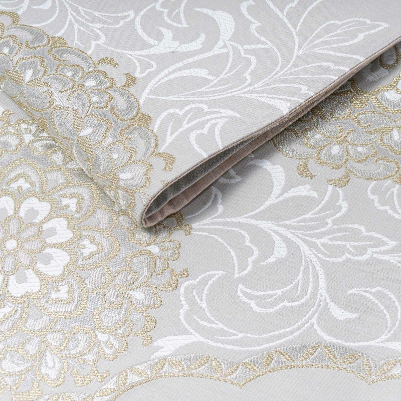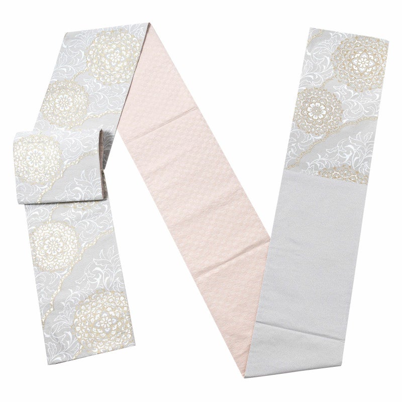 振袖 袋帯 単品「白鼠色 白×金 花唐草」六通柄 日本製 お仕立て上がり 振袖用 袋帯 お仕立て済 振袖帯 結婚式 成人式 フォーマル【メール便不可】