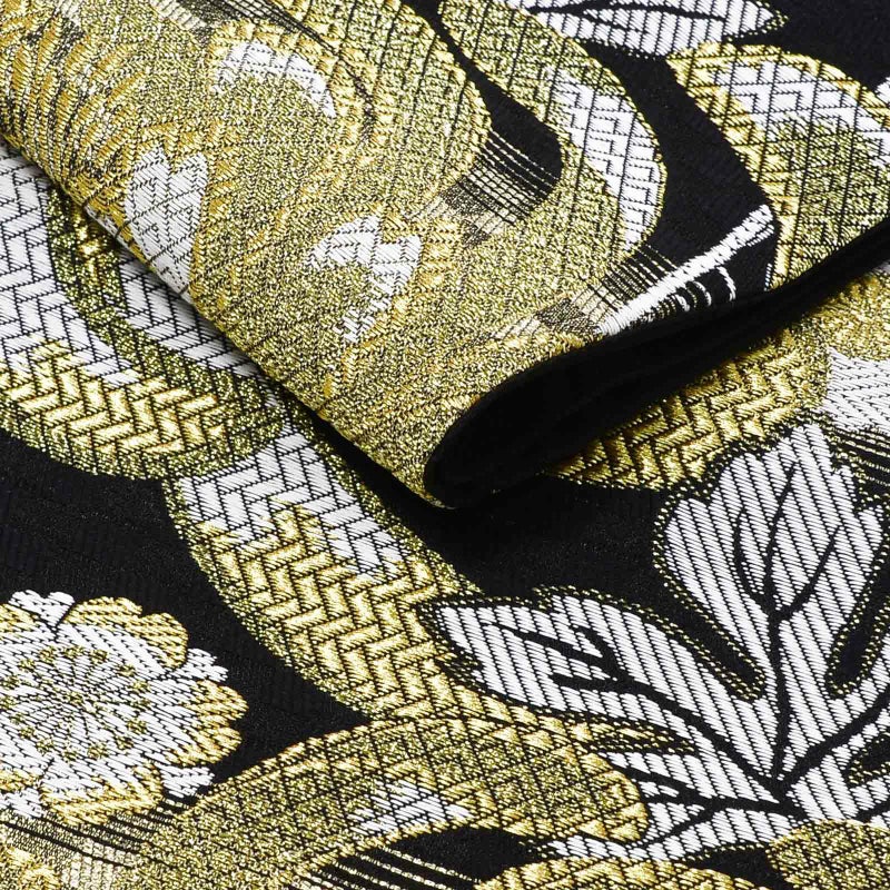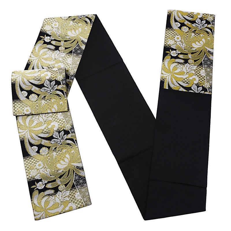振袖 袋帯 単品「黒地、金×白 市松、麻の葉に菊」日本製 お仕立て上がり 振袖用 袋帯 お仕立て済 振袖帯 結婚式 成人式 フォーマル【メール便不可】
