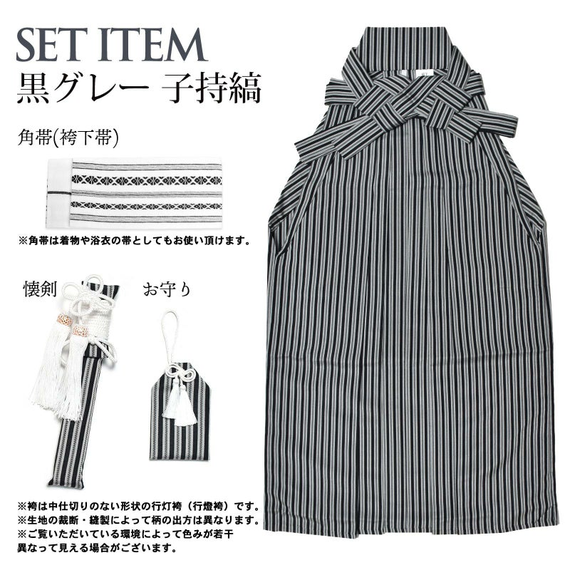 【商品内容】袴、角帯(袴下帯)、懐剣、お守りの計4点