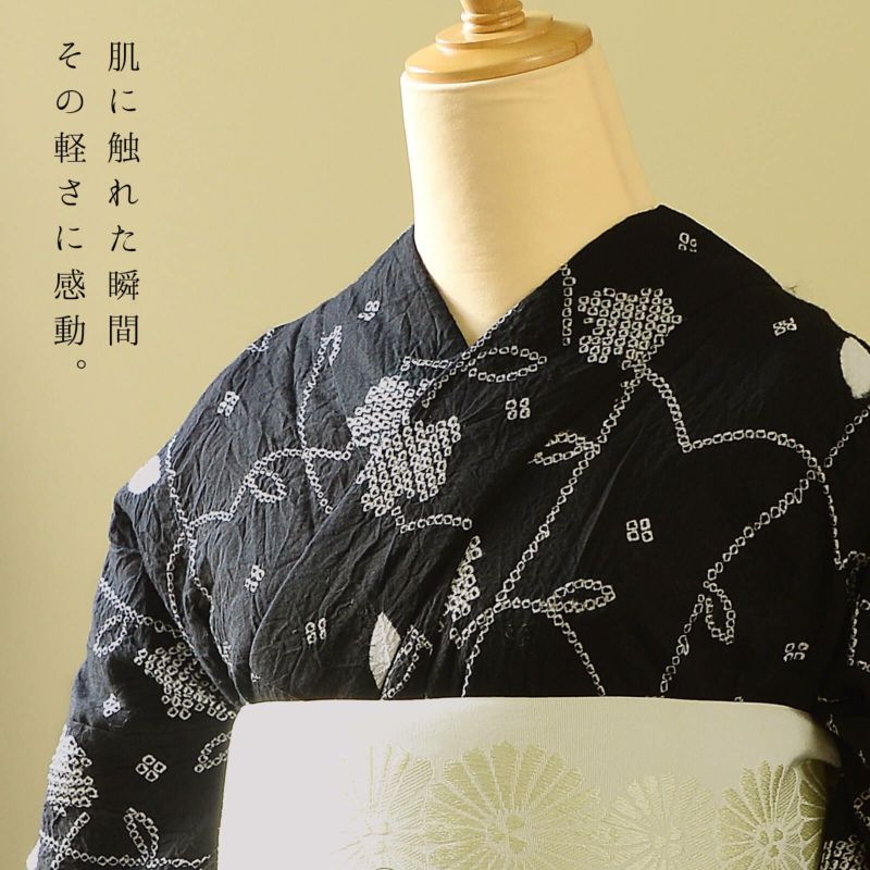 【訳アリ】お仕立て上がり絞り浴衣単品「フラワータペストリー 黒」有松絞り 女性浴衣単品 レディース浴衣単品 綿 お仕立て上がり浴衣 yukata