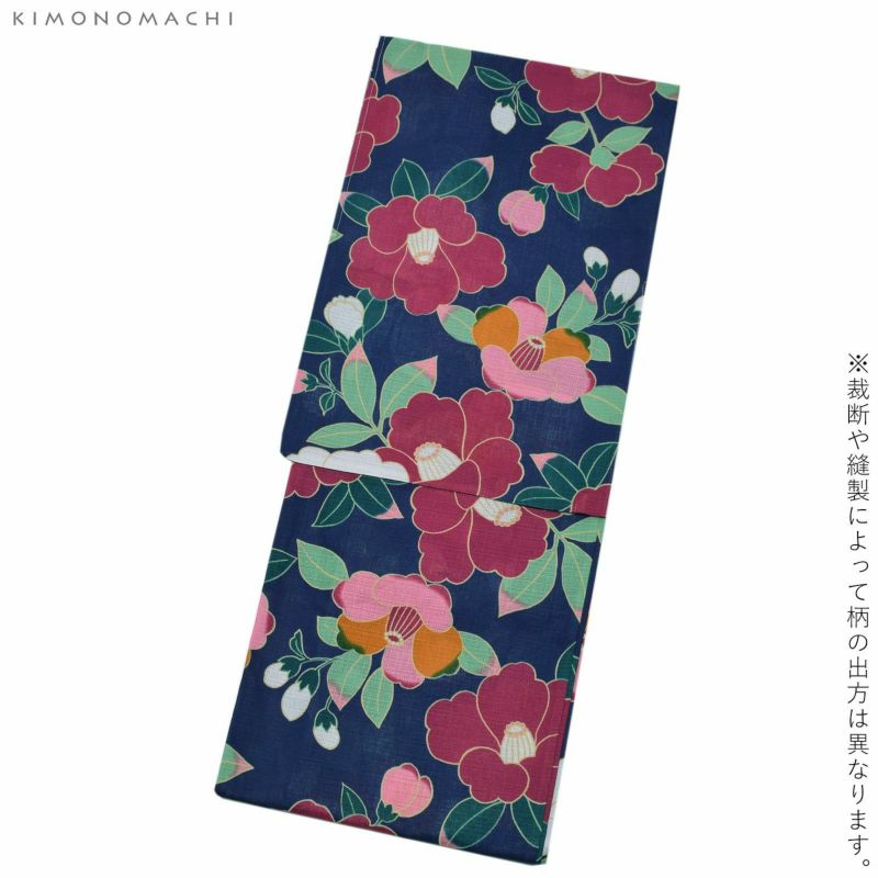 【色柄】ネイビー地に紫・ピンク・白のレトロタッチの椿