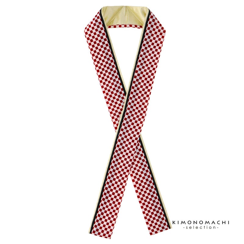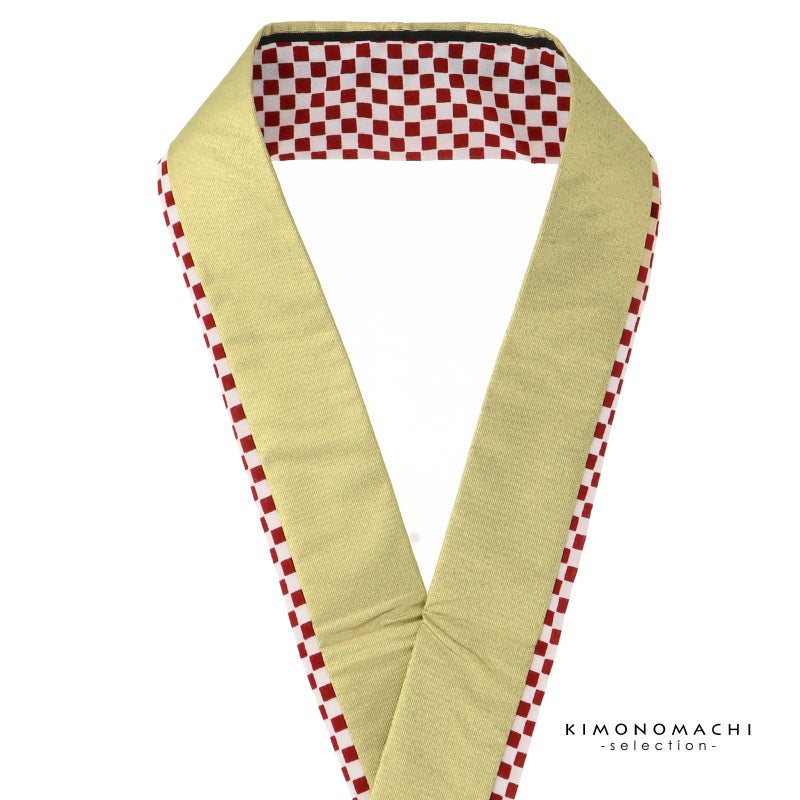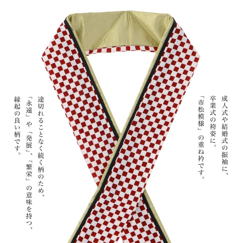 【色柄】赤と白の市松文様、黒、メタリックなゴールドを重ねた衿。