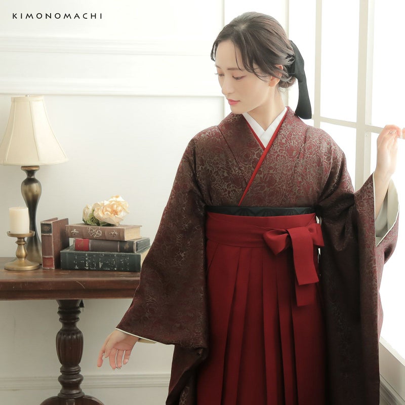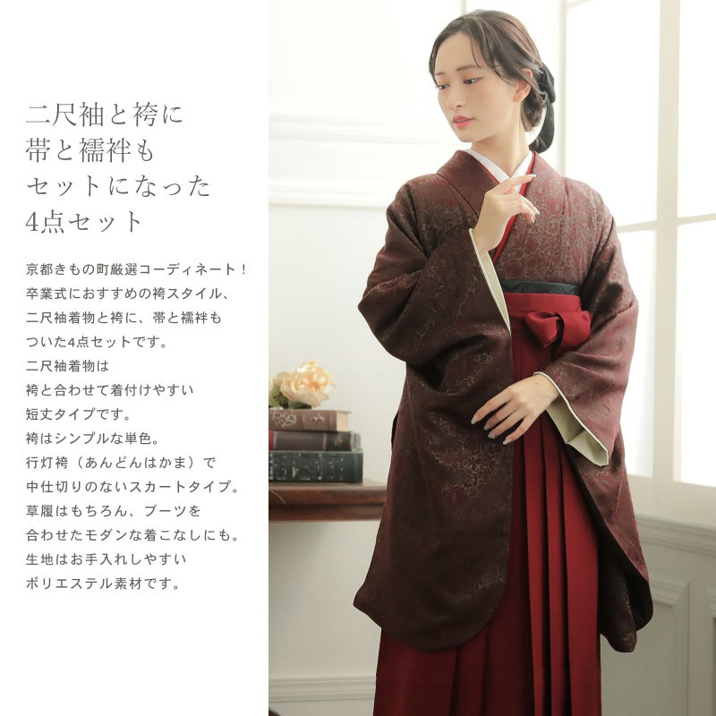 卒業式におすすめの袴スタイル、二尺袖着物と袴に、帯と襦袢もついた4点セットです。
