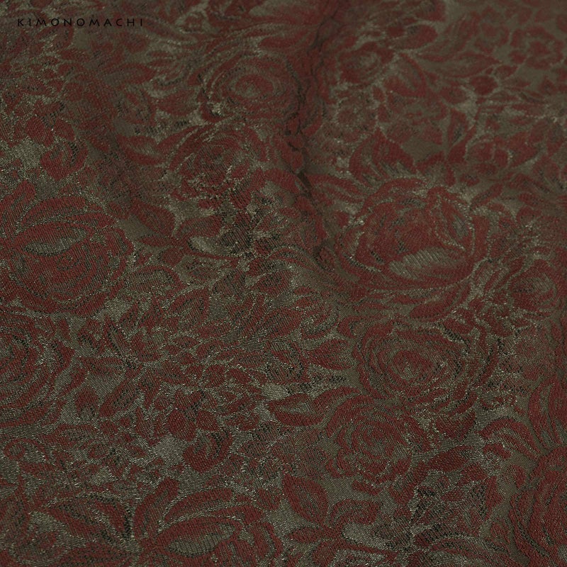 二尺袖着物:光沢のあるチャコールグレーにワインカラーの薔薇があしらわれたシックなお着物。ジャガード織りのため柄が立体的に浮かび上がり、見る角度によって色合い・風合いが変わります。