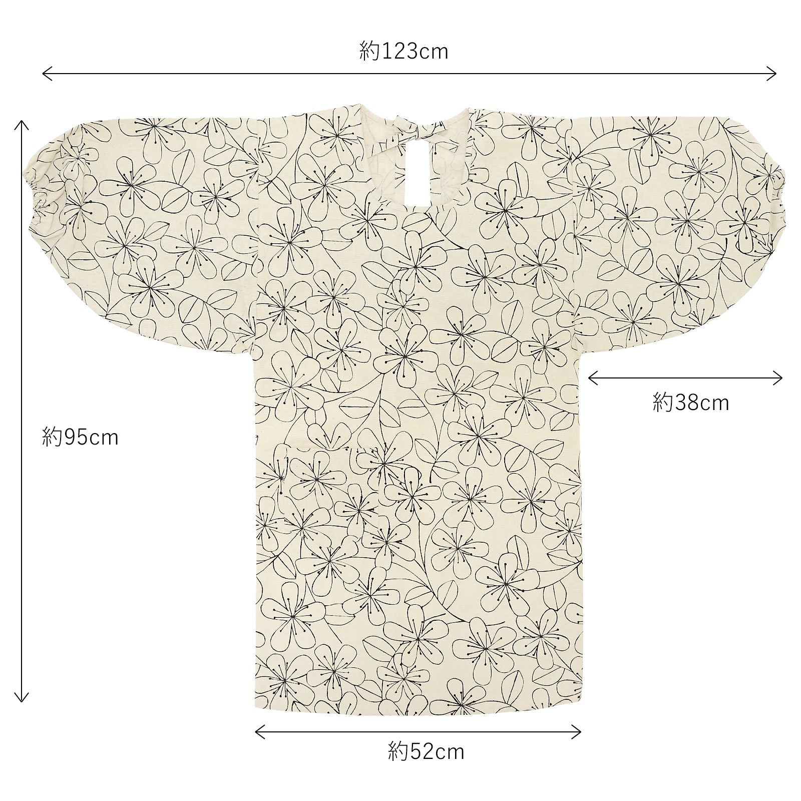 丈:約95cm / 身幅:約52cm / 袖の長さ:約38cm / 裾周り:約102cm