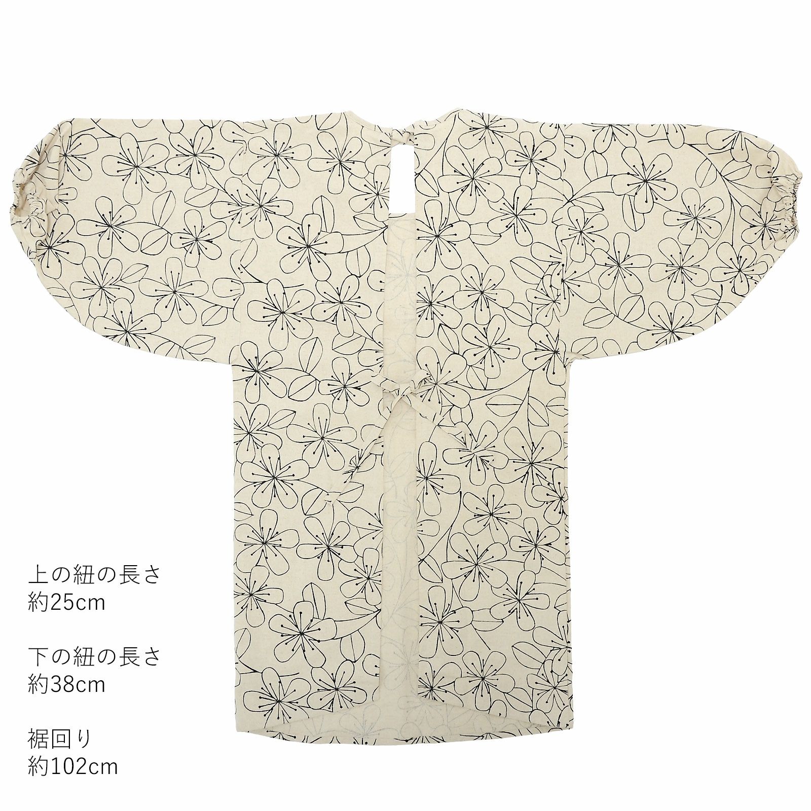 後ろの首元と腰部分の二か所の紐で身幅を自由に調節できます。