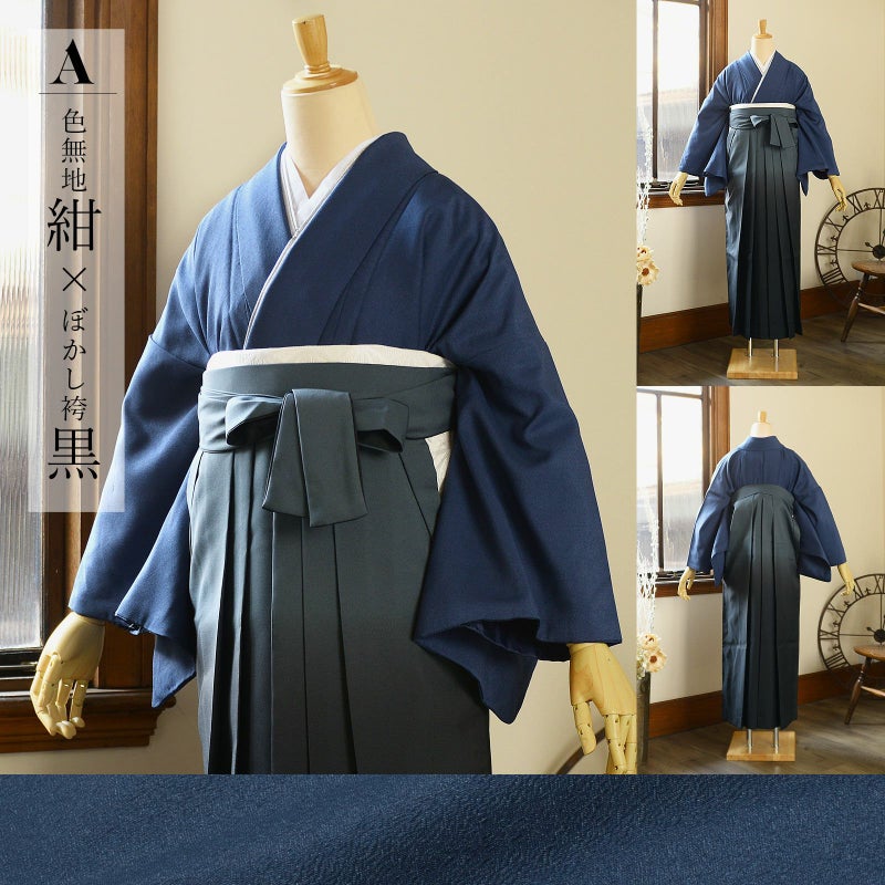 A.色無地 紺×ぼかし袴 黒