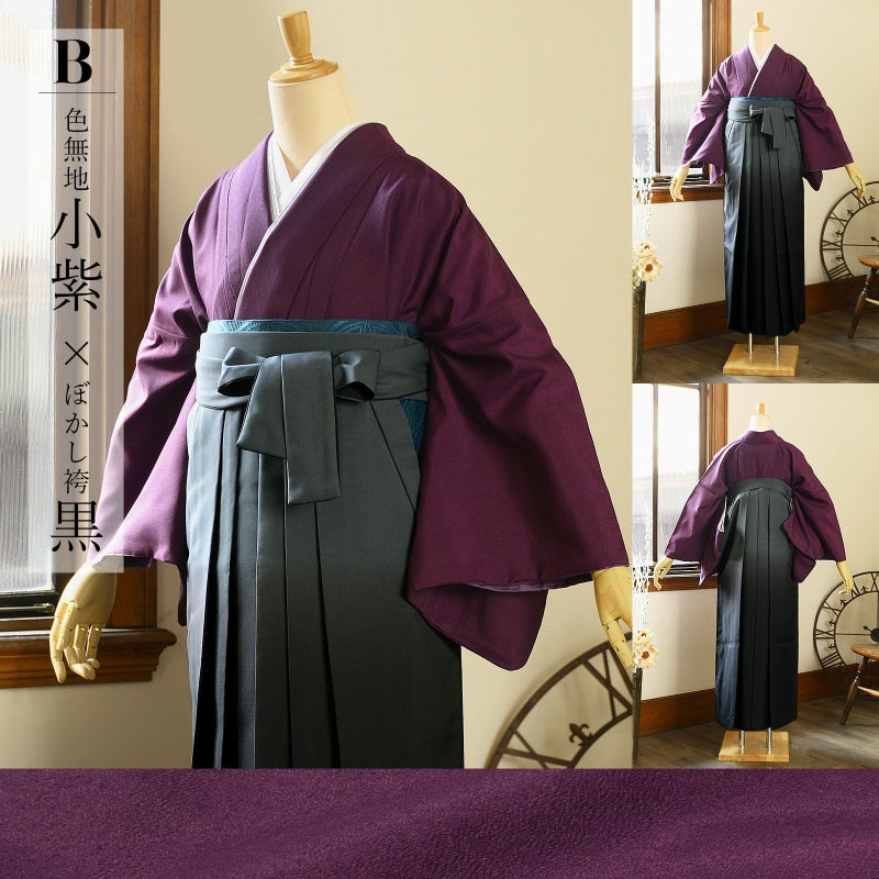 B.色無地 小紫×ぼかし袴 黒
