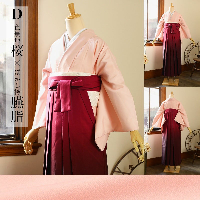 D.色無地 桜×ぼかし袴 臙脂