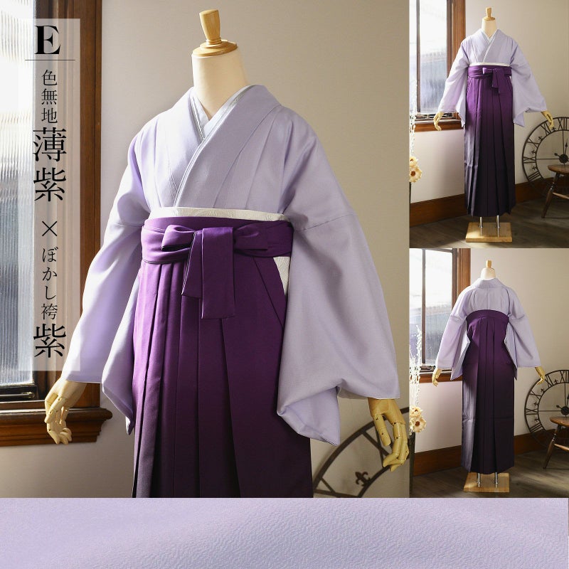 E.色無地 薄紫×ぼかし袴 紫