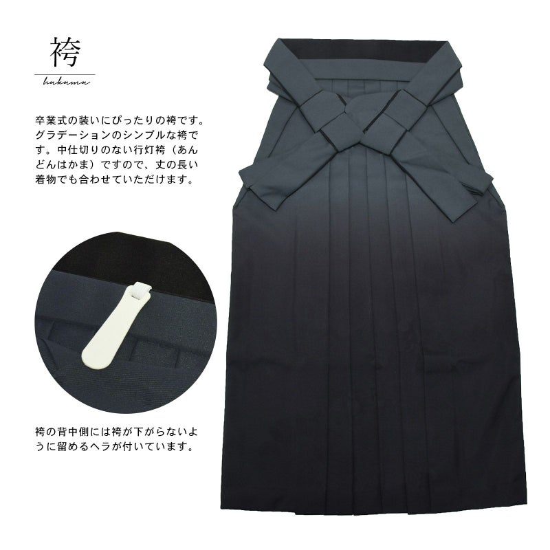 袴は、グラデーション袴。行灯袴(あんどんはかま)で中仕切りのないスカートタイプ。