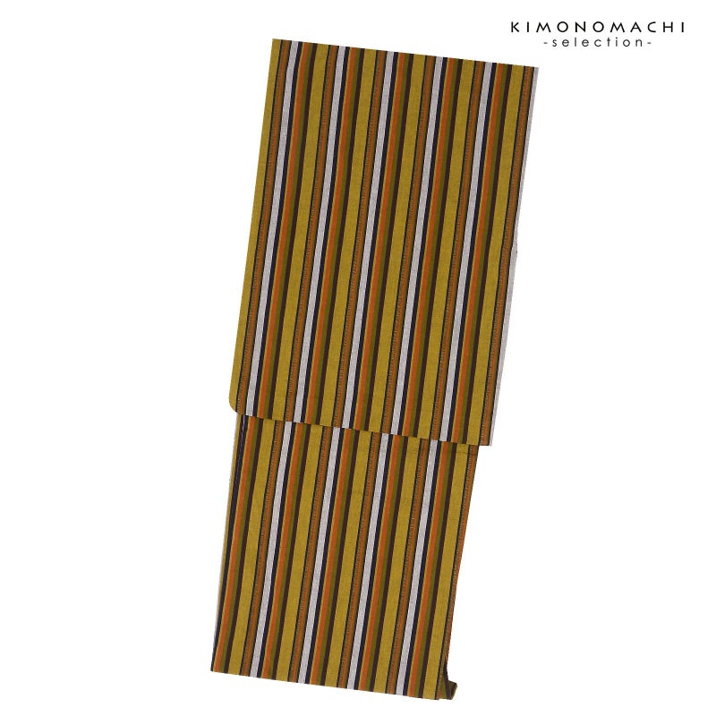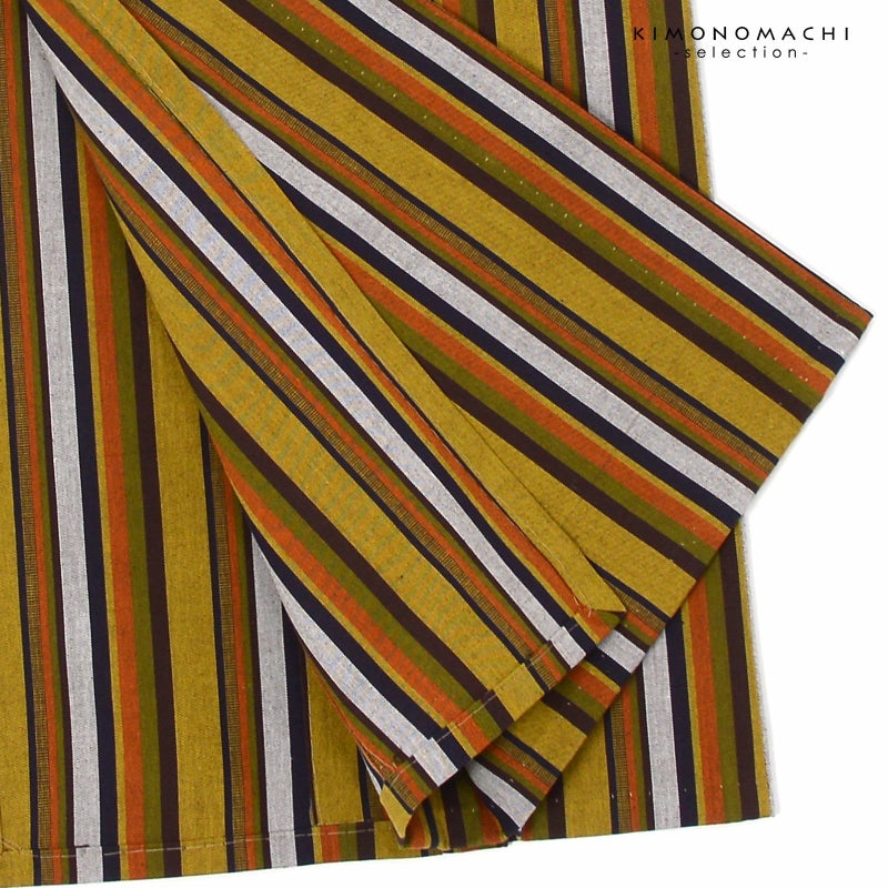 【色柄】黄土色みの金茶色に白、黒、茶色に抹茶色の縞。