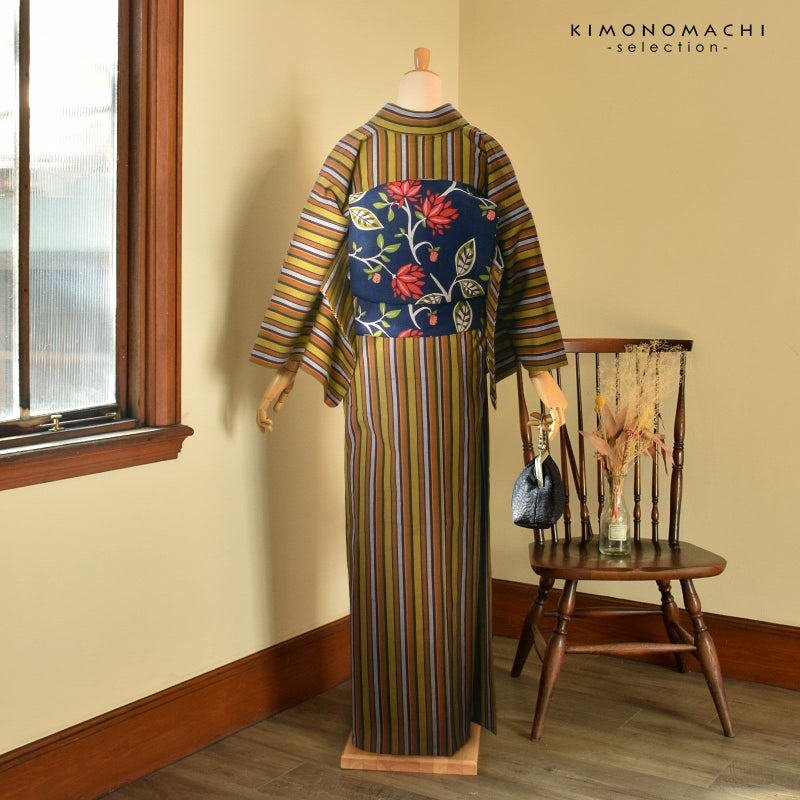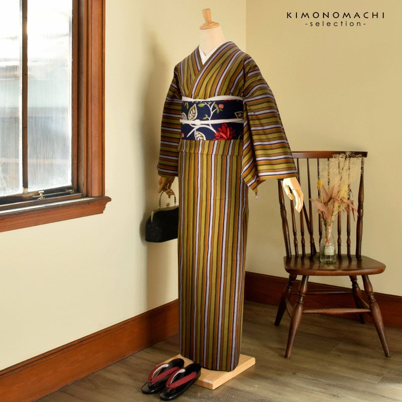 普段着きものに。カフェやランチ、お買い物などちょっとしたお出かけにぴったりのカジュアルなお着物です。