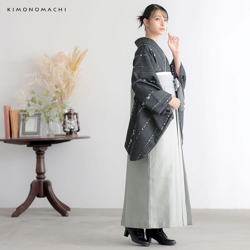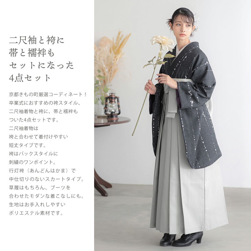 京都きもの町厳選コーディネート!卒業式におすすめのスタイル、二尺袖着物と袴に、帯と襦袢もついた4点セットです。