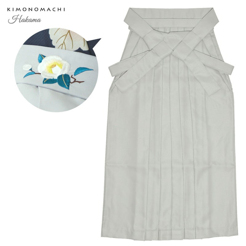 袴:アイスグレー地、腰の部分に白の椿の刺繍