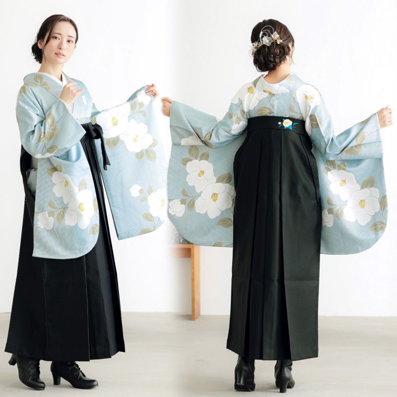 袴:黒地、腰の部分に白の椿の刺繍