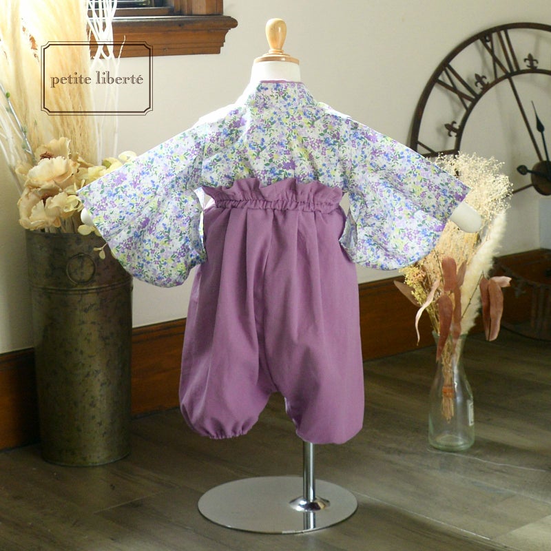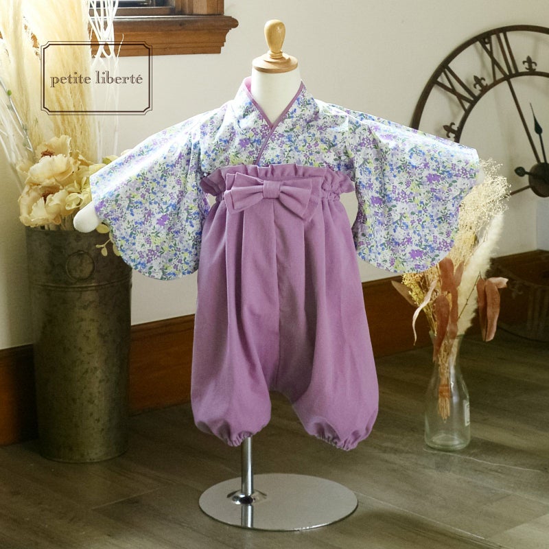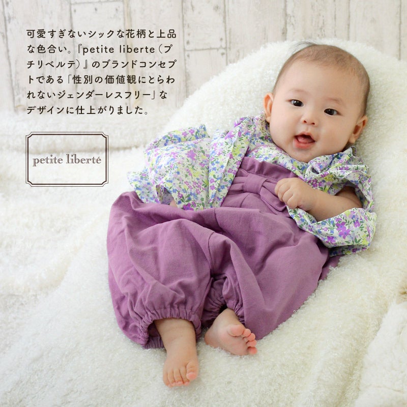 家族で写真を撮ったりお出かけしたりが楽しくなる、特別な日の装いにふさわしい赤ちゃん用の袴セットです。70~90cmの3サイズをご用意。