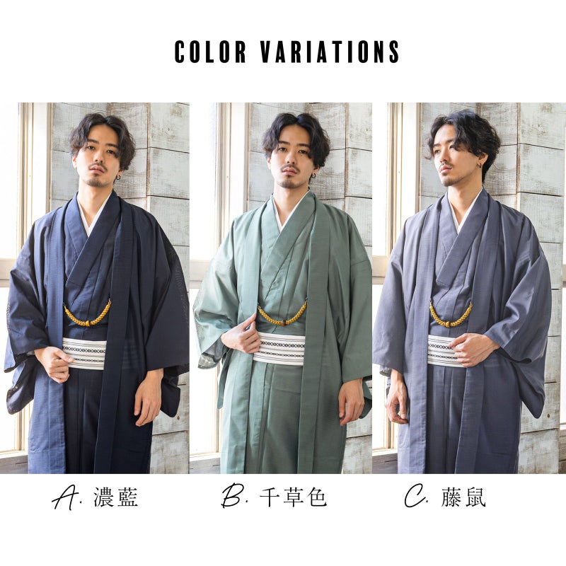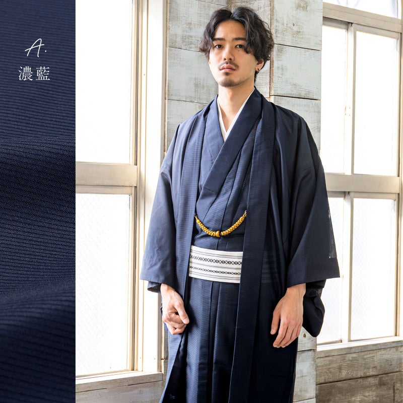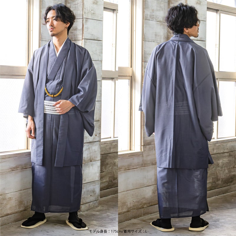 4. メンズ 夏羽織 色無地 絽(駒絽)洗える単衣羽織「濃藍・千草色・藤鼠」S/M/L/LL ポリエステル 単衣 涼しい 男性 男羽織 夏祭り 花火 茶道 お盆 KIMONOMACHI オリジナル【メール便不可】