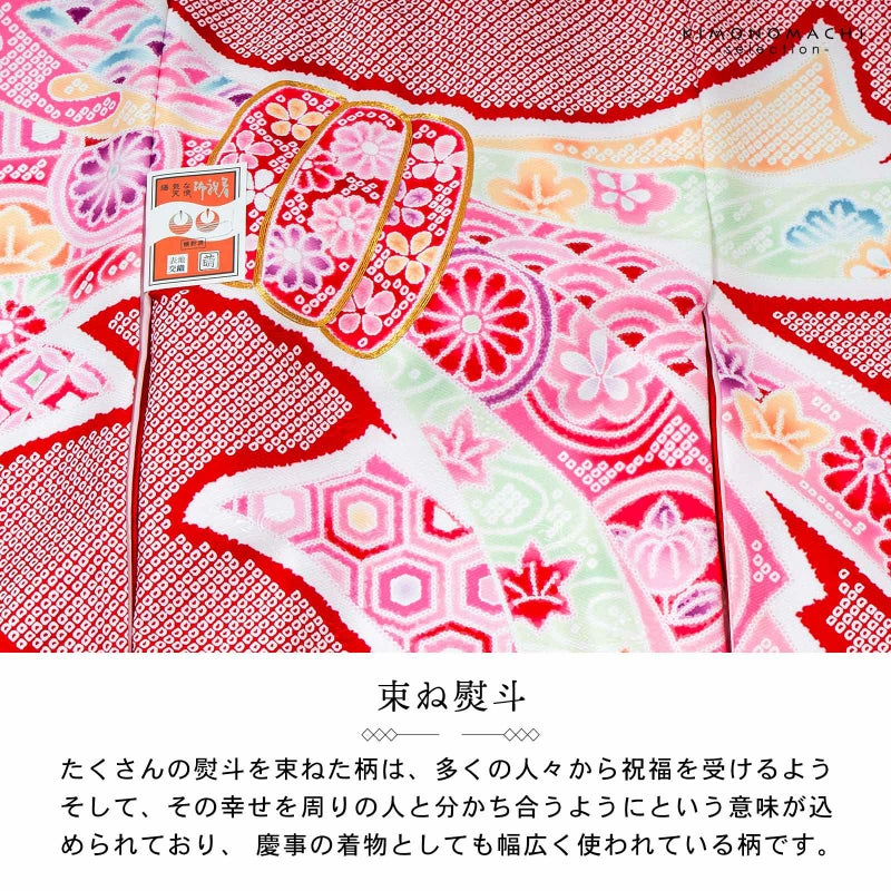 3. 女の子のお宮参り産着 祝い着「絞り調 赤 束ね熨斗」日本製 一つ身 一ツ身 初着 お初着 御祝着 着物 熨斗目 のしめ 七五三 お宮詣り 祈願 お祈り 子供 キッズ 赤ちゃん ベビー 女児【メール便不可】