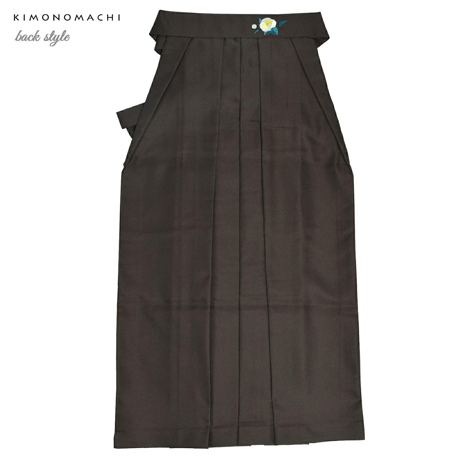 袴:茶色地、腰の部分に白の椿の刺繍