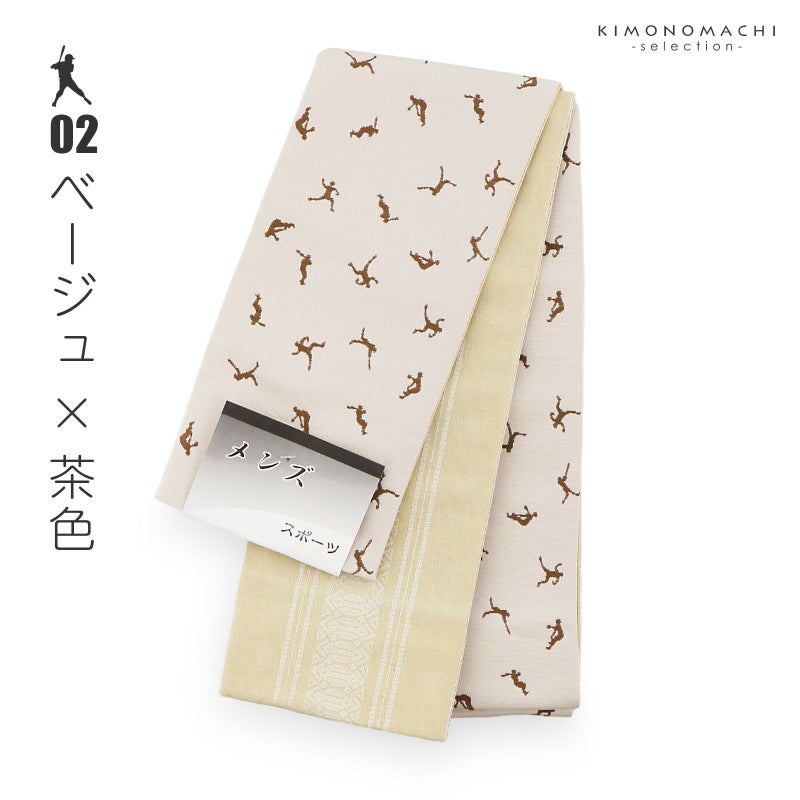 角帯 男性用角帯 単品「スポーツ 野球 / 黒×薄黄色・ベージュ×茶色・黒×葡萄色・黒×白・黒×ターコイズ・グレー×浅紫・グレー×青緑・グレー×黒 全8色」日本製 小袋帯 メンズ 男性用 紳士帯 浴衣帯【メール便不可】