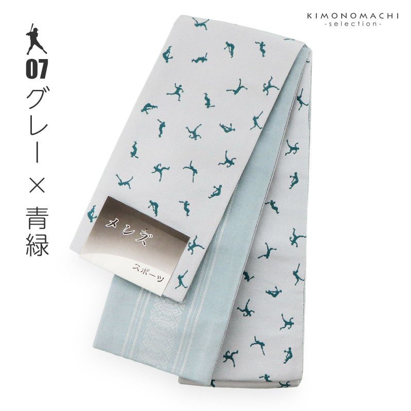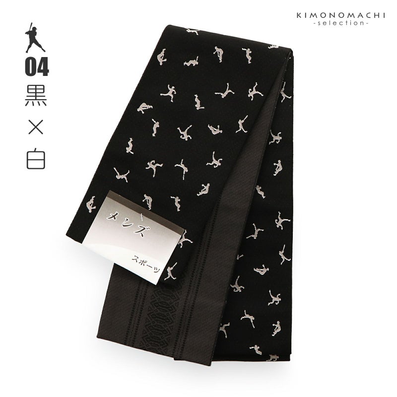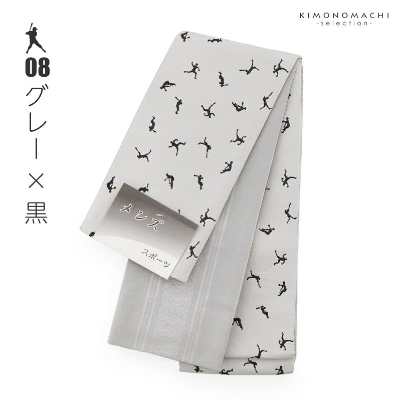 着物にも浴衣にも シンプルで使いやすい男性用帯 角帯 男性用角帯 単品「スポーツ 野球 / 黒×薄黄色・ベージュ×茶色・黒×葡萄色・黒×白・黒×ターコイズ・グレー×浅紫・グレー×青緑・グレー×黒 全8色」日本製 小袋帯 メンズ 男性用 紳士帯 浴衣帯【メール便不可】