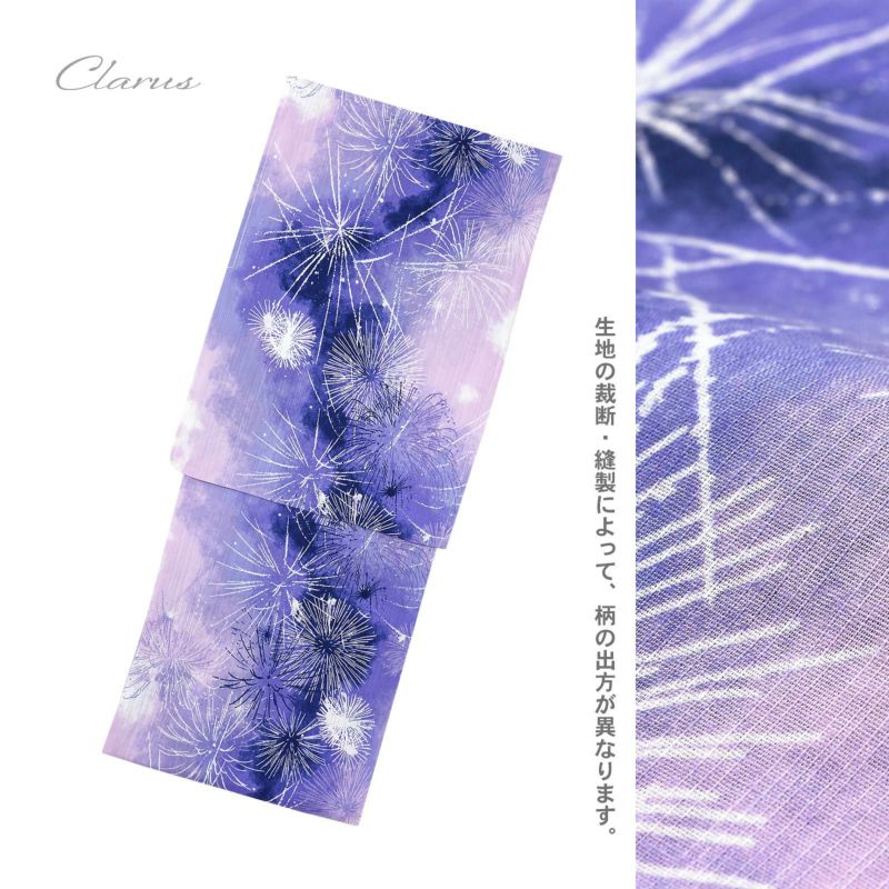Clarus レディース 女性浴衣 単品「夏の思い出 虹映えのあじさい 青紫・夢語り花火 青紫・幻想花に姫金魚 全3柄」クラルス F/フリーサイズ 綿浴衣 大人可愛い きもの町オリジナル 女性用浴衣 ゆかた yukata【メール便不可】