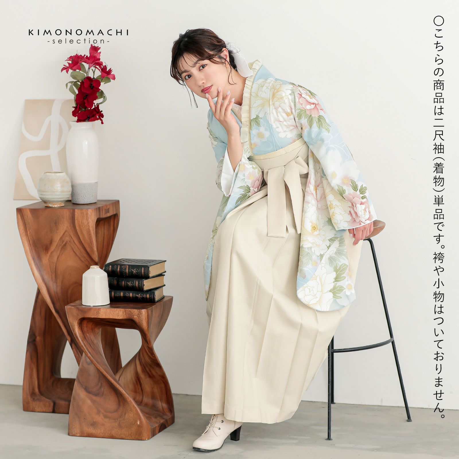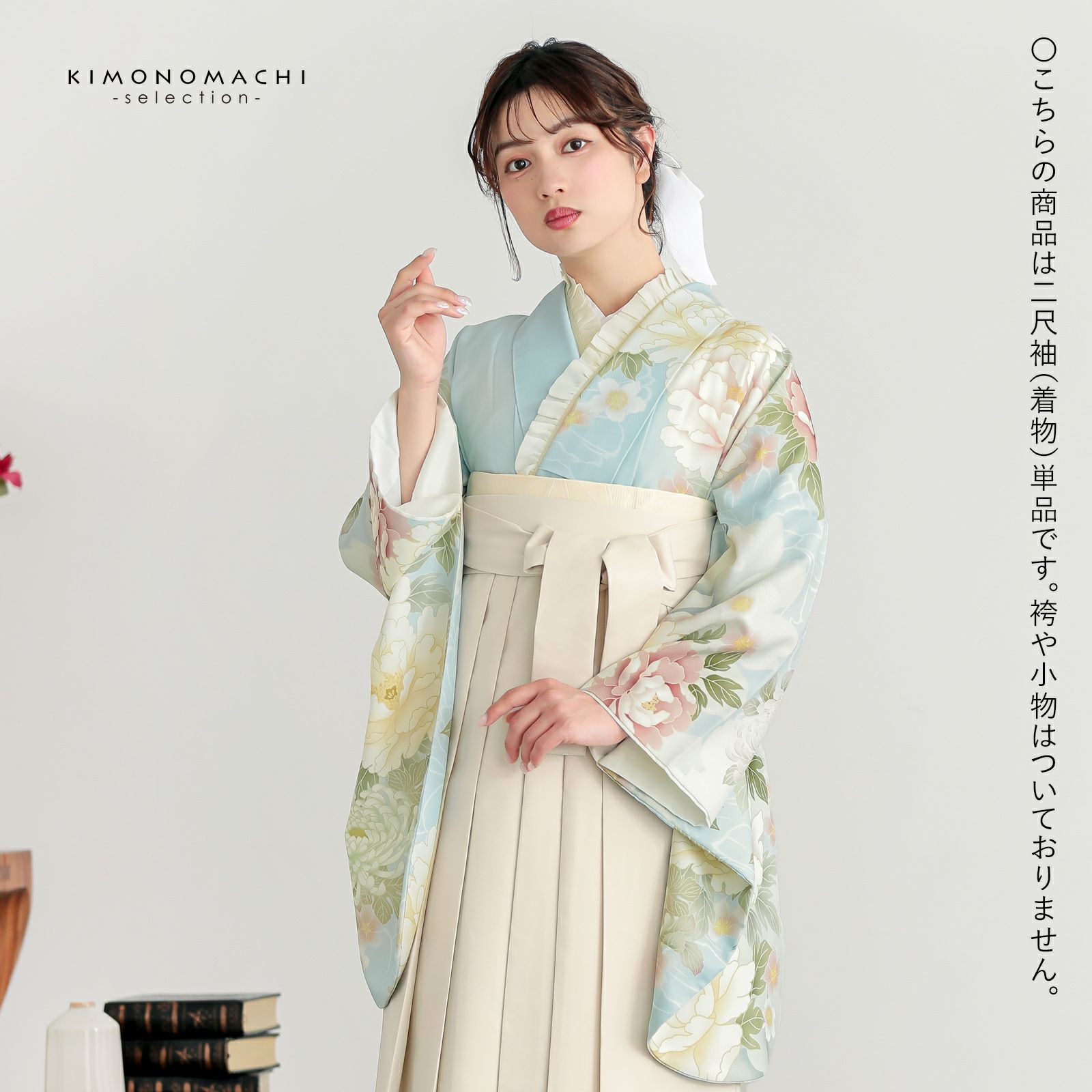 袴と合わせて卒業式、謝恩会などに。袖が長く、華やかな雰囲気です。