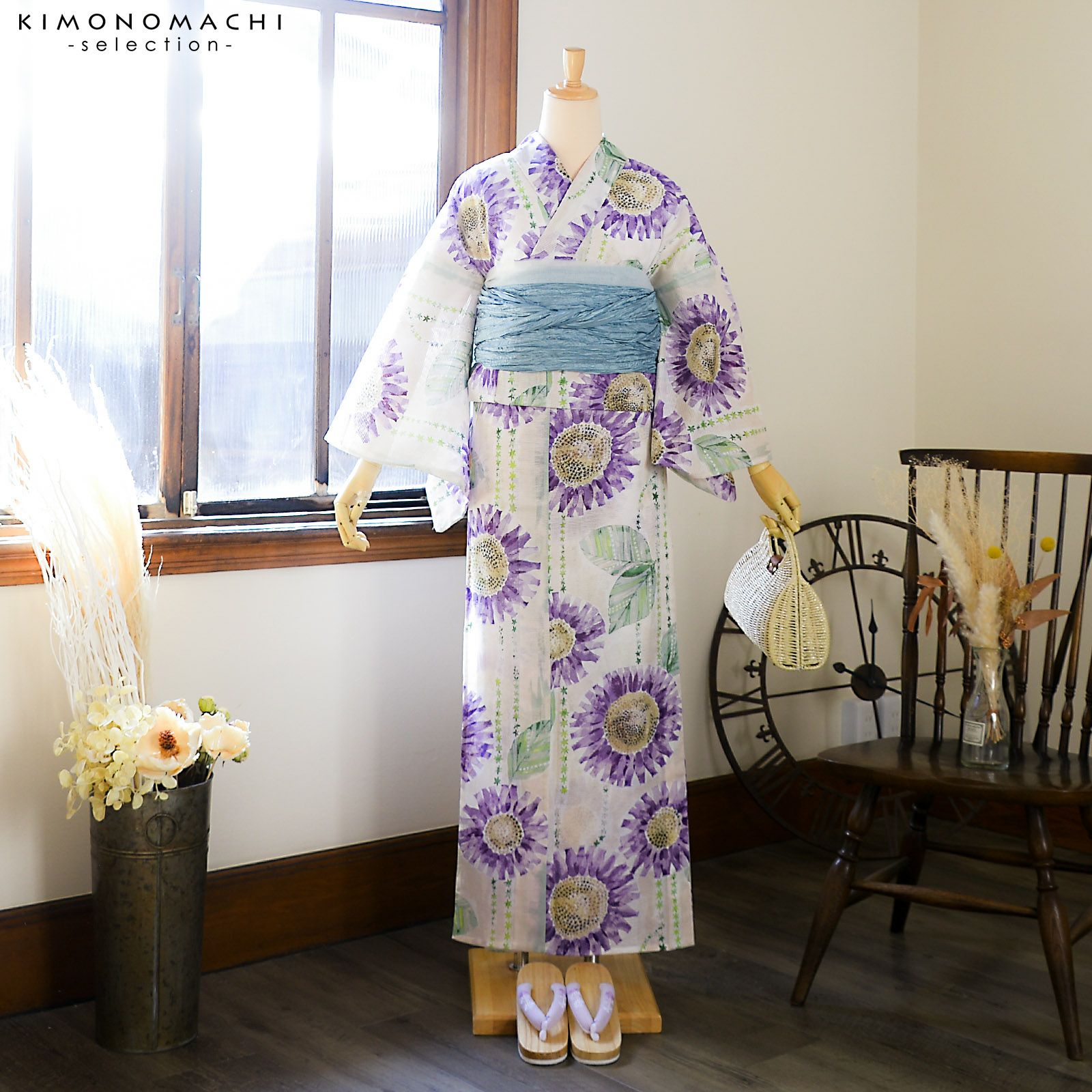 ひと味違う 大人のブランド浴衣単品 浴衣 レディース ブランド浴衣 単品「みすゞうた 向日葵 紫色 M 2502」Fサイズ 大人 綿絽浴衣 女性浴衣単品 レディース浴衣単品 個性的 花火大会 夏祭り 女性浴衣 女性ゆかた 夏着物<H>【メール便不可】