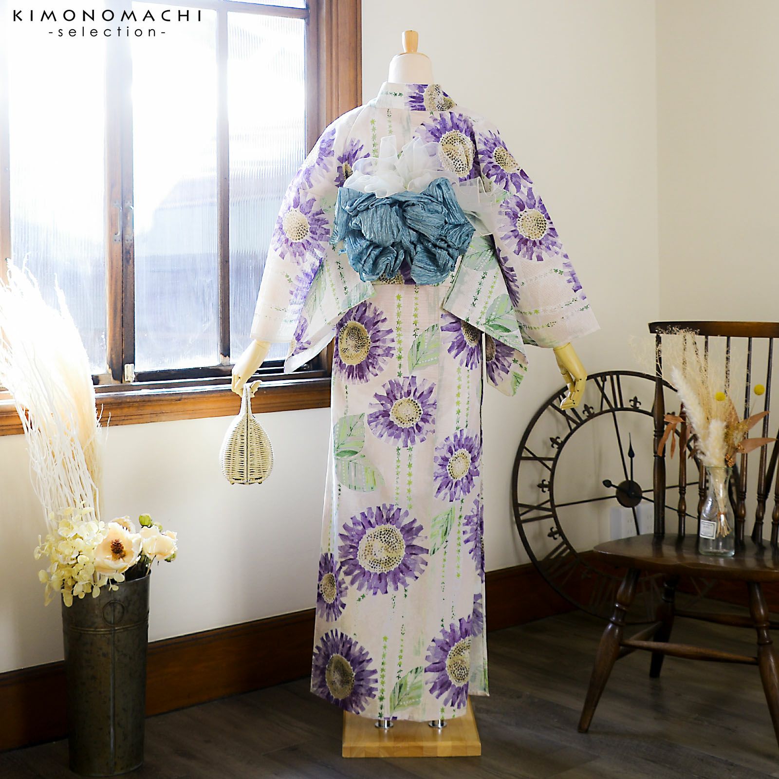5. 浴衣 レディース ブランド浴衣 単品「みすゞうた 向日葵 紫色 M 2502」Fサイズ 大人 綿絽浴衣 女性浴衣単品 レディース浴衣単品 個性的 花火大会 夏祭り 女性浴衣 女性ゆかた 夏着物<H>【メール便不可】