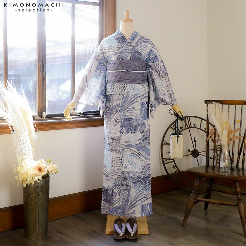 5. 浴衣 レディース ブランド浴衣 単品「みすゞうた 波の子守唄 紫鼠色 M 2513」Fサイズ 大人 綿絽浴衣 女性浴衣単品 レディース浴衣単品 個性的 花火大会 夏祭り 女性浴衣 女性ゆかた 夏着物<H>【メール便不可】