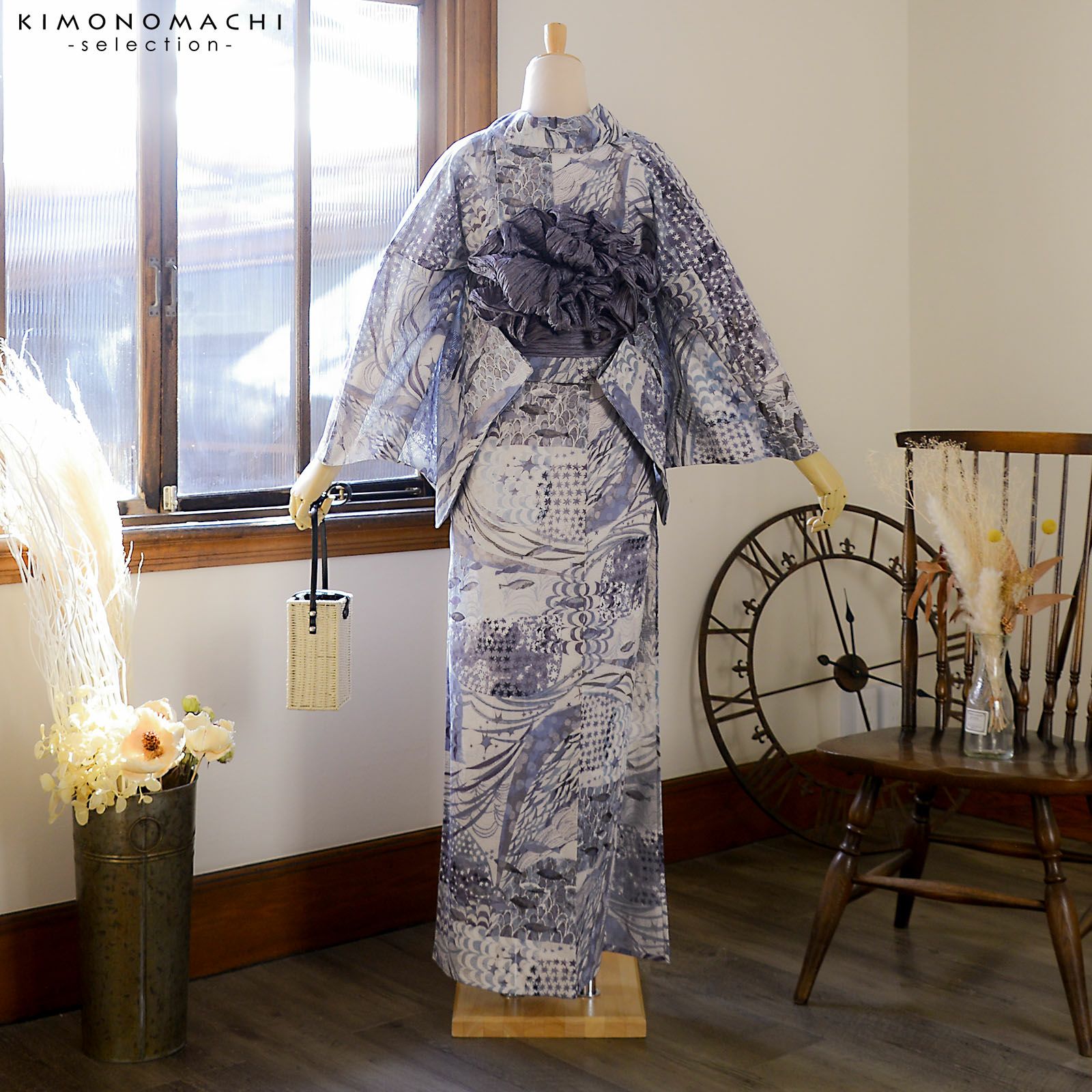 浴衣 レディース ブランド浴衣 単品「みすゞうた 波の子守唄 紫鼠色 M 2513」Fサイズ 大人 綿絽浴衣 女性浴衣単品 レディース浴衣単品 個性的 花火大会 夏祭り 女性浴衣 女性ゆかた 夏着物<H>【メール便不可】