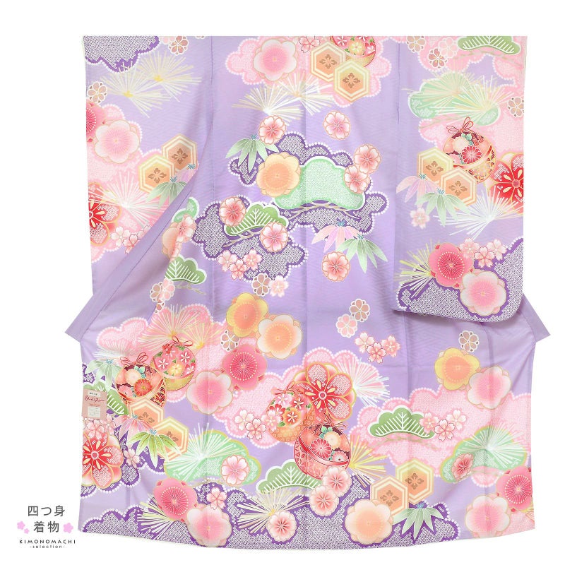 七五三 7歳 四つ身着物フルセット ブランド Shikibu Roman 式部浪漫「藤色 梅に鞠、雲」女の子 7才 女児用 子供着物 七才のお祝い着向け【メール便不可】