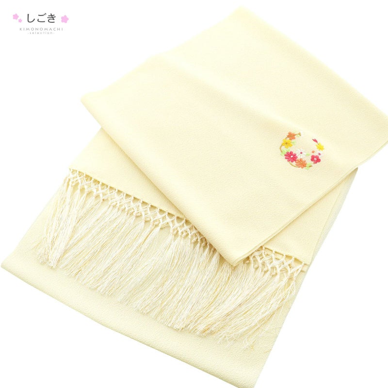 しごき・帯揚げ:明るいアイボリー。ポイントに花の丸の刺繍。
