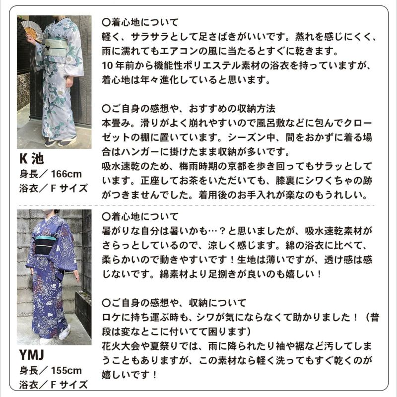 吸水速乾、高機能ポリエステル浴衣、レディース浴衣と兵児帯の2点セットです。
