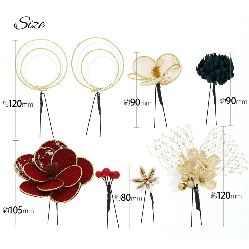 【サイズ】Uピン髪飾り:お花飾り部分 直径約3.5~9cm / Uピン部分 長さ5.5cm