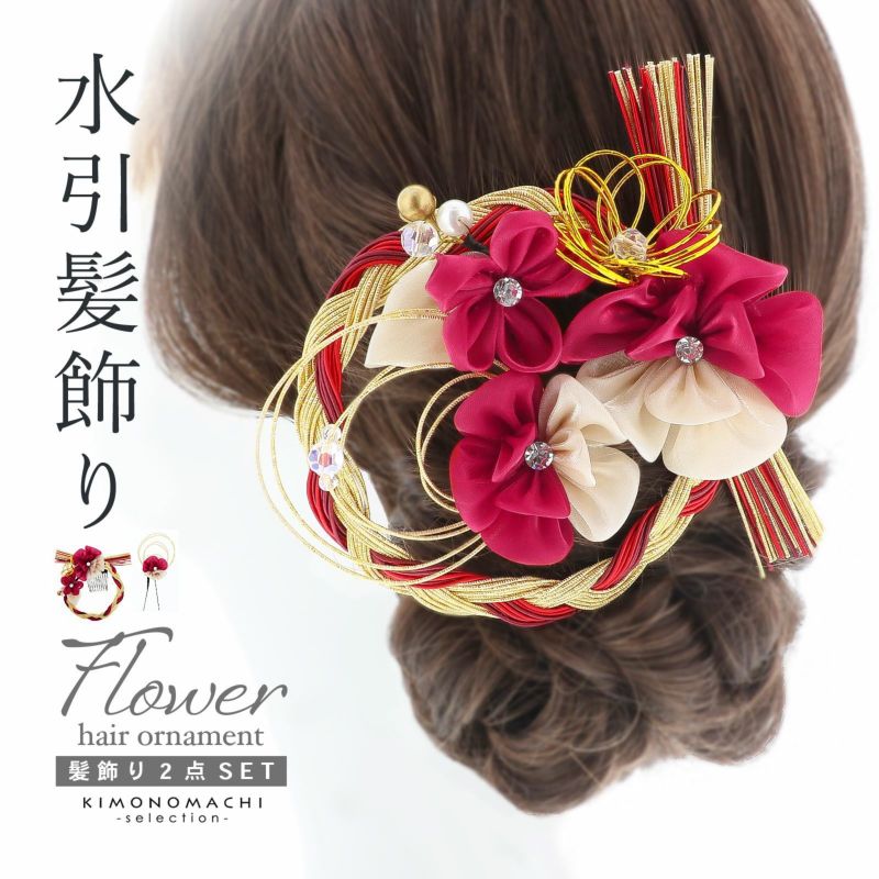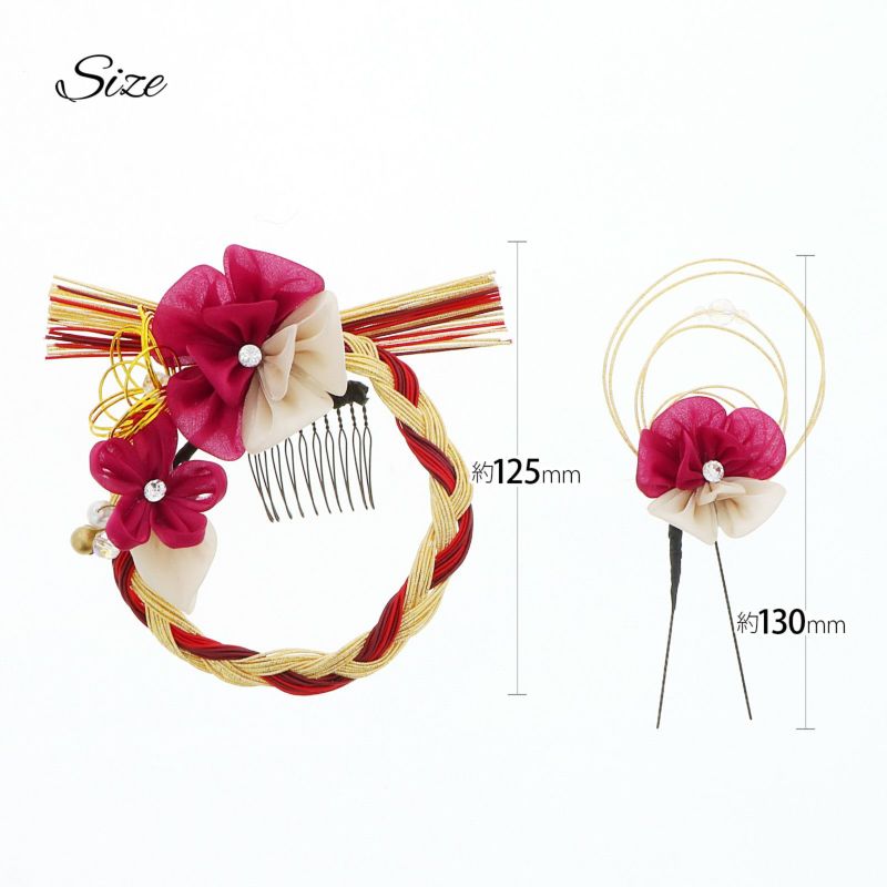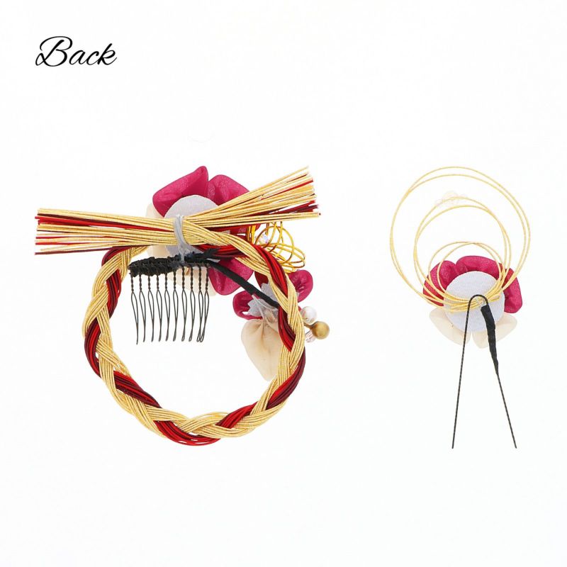 成人式 髪飾り コームとUピンの2点セット「赤×ゴールド しめ飾りとお花」コーム Uピン 日本製 振袖用髪飾り お花髪飾り 成人式 卒業式 結婚式 着物【メール便不可】