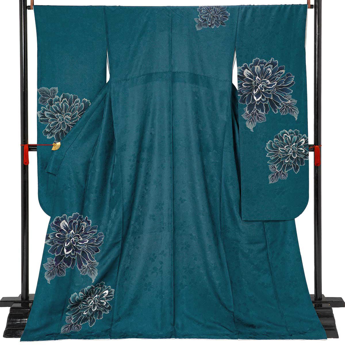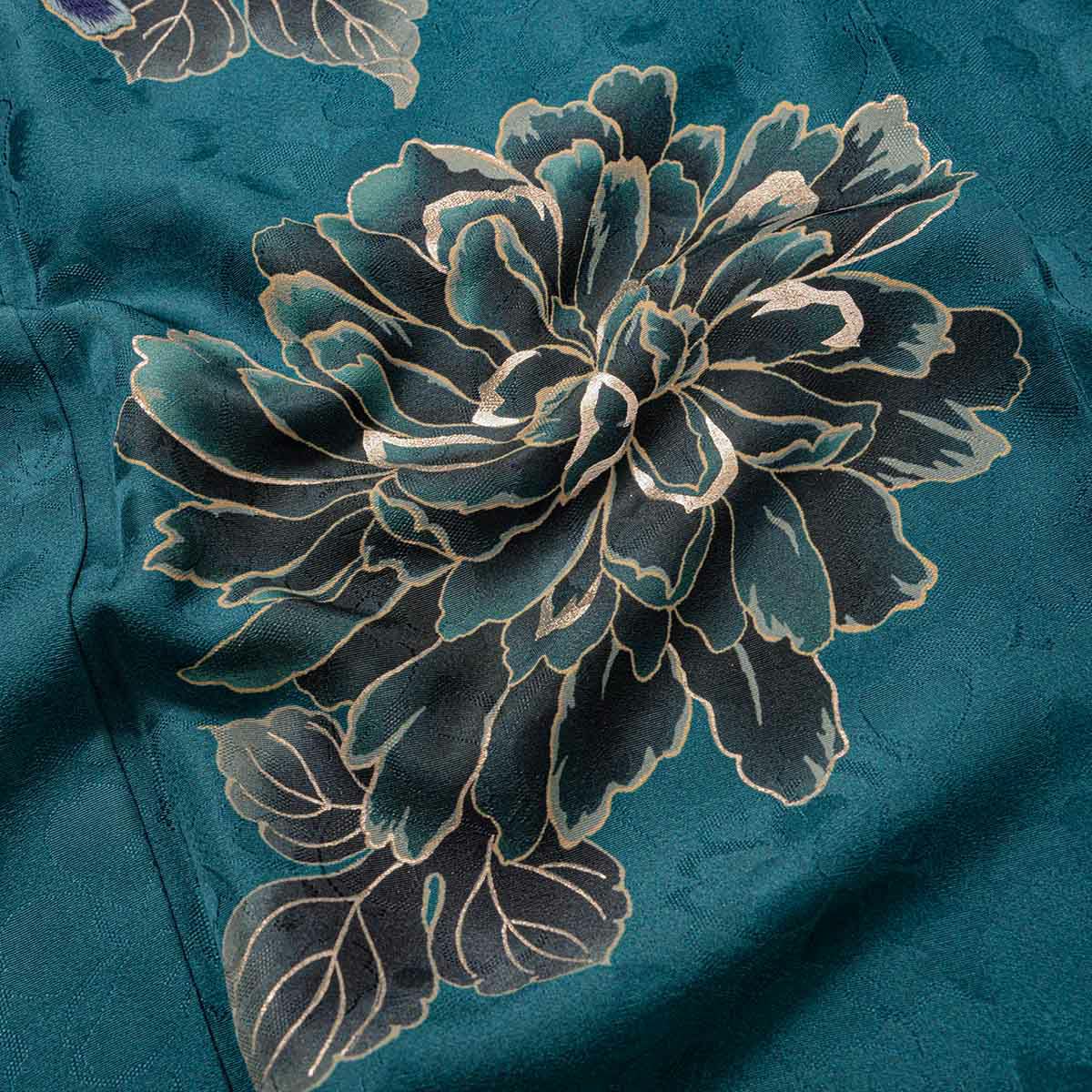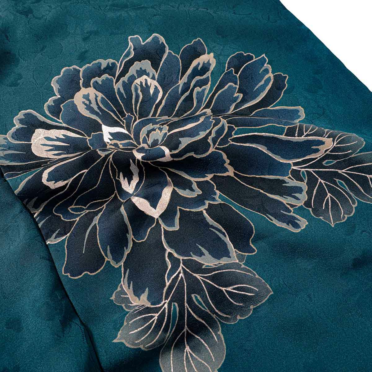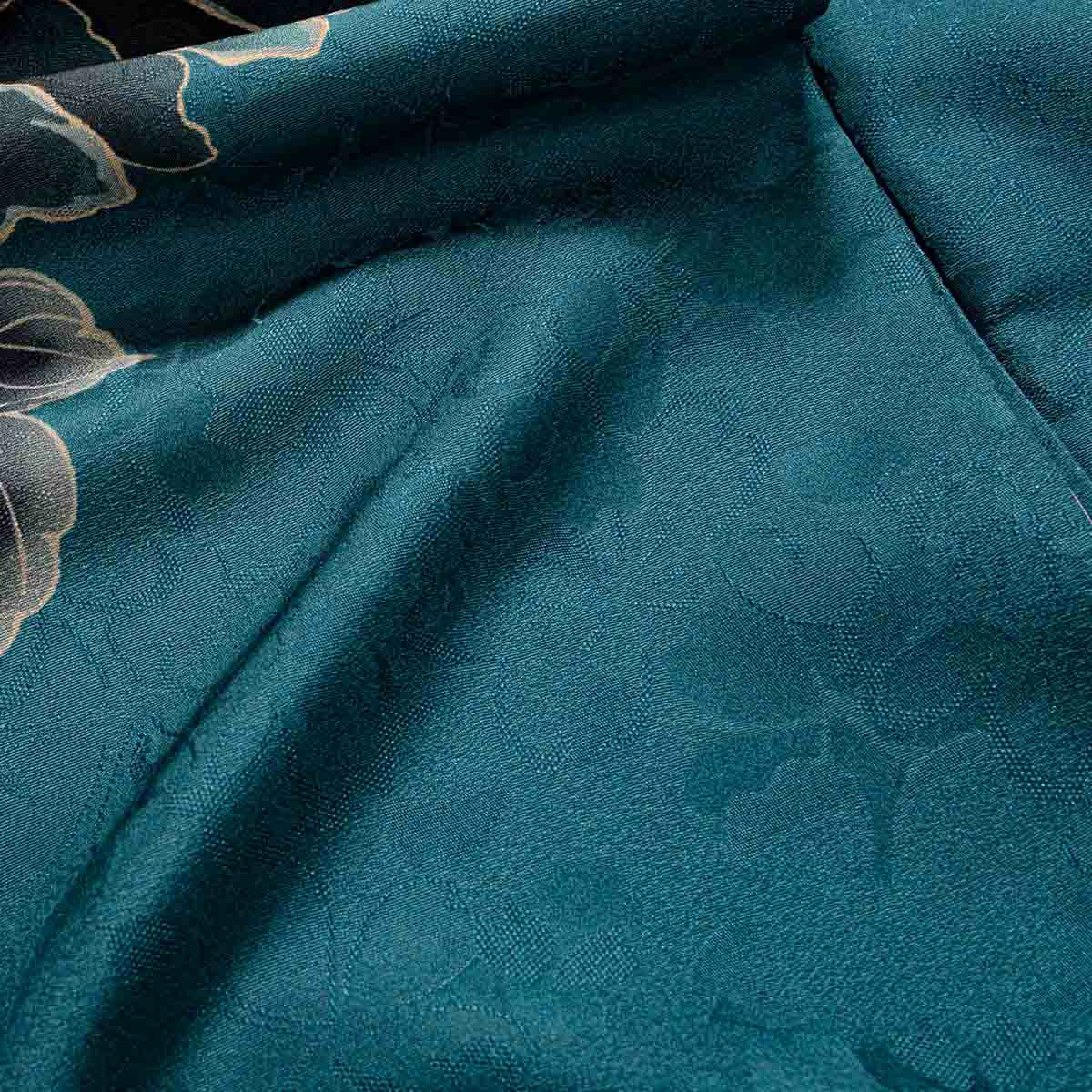 鮮やかなターコイズブルーに、シックな牡丹のモチーフが映える、ブランド「TRENDNOW × 高石あかり」のスタイリッシュなお振袖。あえて抑えた色数と柄の配置が、都会的で洗練された印象を演出。シンプルでありながら存在感があり、“写真に映える”とっておきの一枚です。黒の帯で引き締めたコーディネートは、甘すぎずモード感も漂い、“今っぽさ”を求める方にぴったり。王道から少し外して、自分らしい成人式を迎えたいあなたへ。