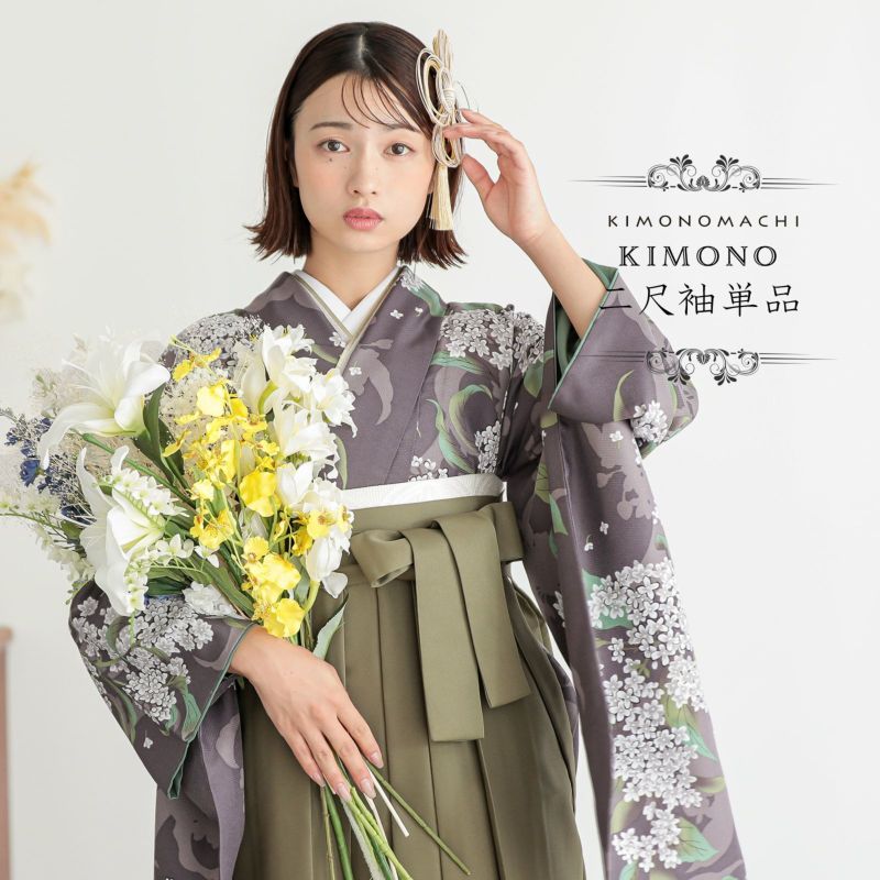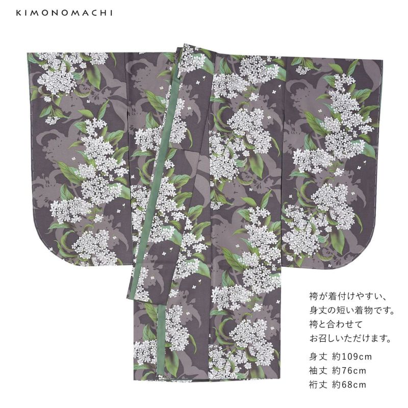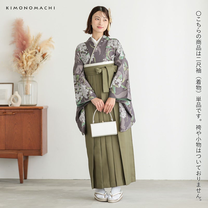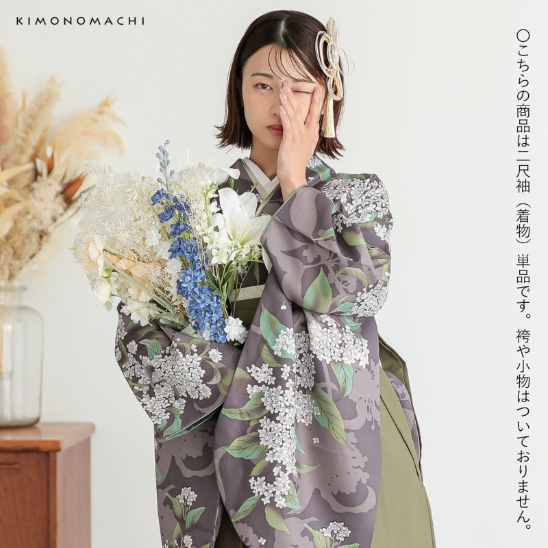 二尺袖着物 単品「銀木犀 灰紫色」KIMONOMACHIオリジナル お仕立て上がり レディース 洗える着物 二尺袖 着物 袴に合わせて 卒業式 謝恩会に 短丈【メール便不可】
