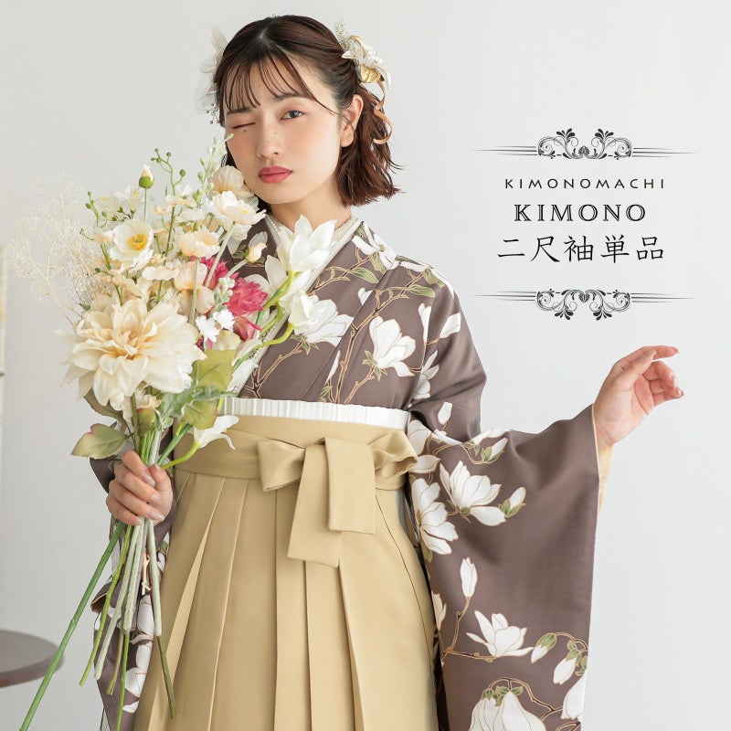 二尺袖着物 単品「白木蓮 加加阿色」KIMONOMACHIオリジナル お仕立て上がり レディース 洗える着物 二尺袖 着物 袴に合わせて 卒業式 謝恩会に 短丈【メール便不可】