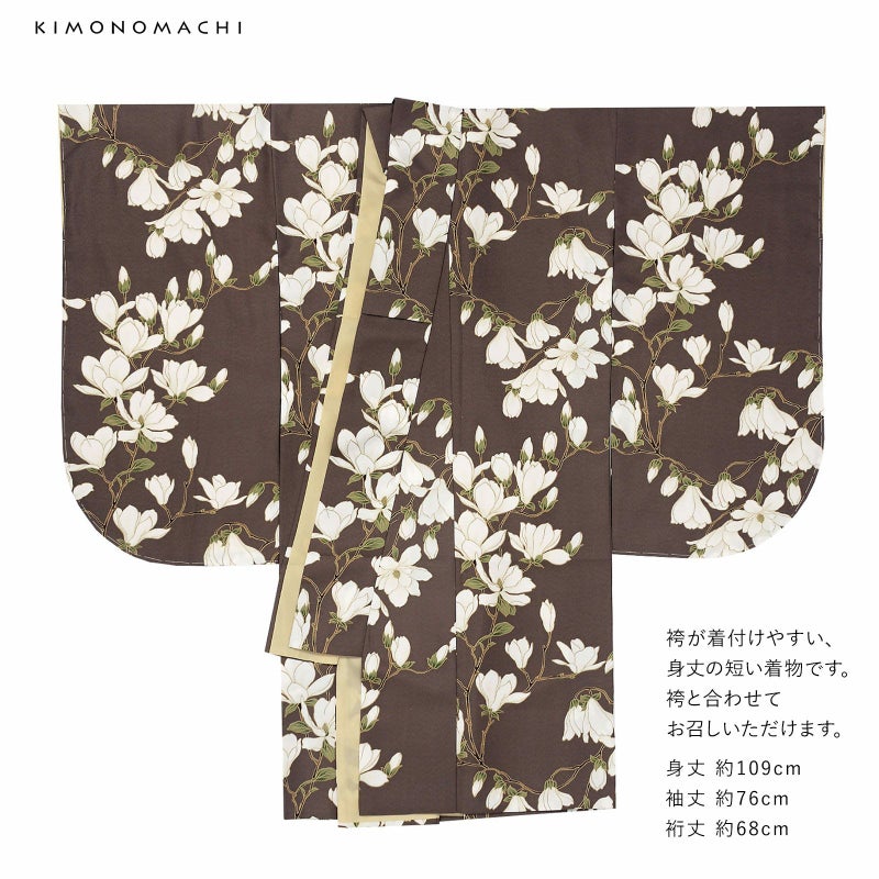 KIMONOMACHI オリジナル! 個性派洗える二尺袖着物 レトロモダン 古典柄 (卒業式応援75%SALE 3/5迄)二尺袖着物 単品「白木蓮 加加阿色」KIMONOMACHIオリジナル お仕立て上がり レディース 洗える着物 二尺袖 着物 袴に合わせて 卒業式 謝恩会に 短丈【メール便不可】