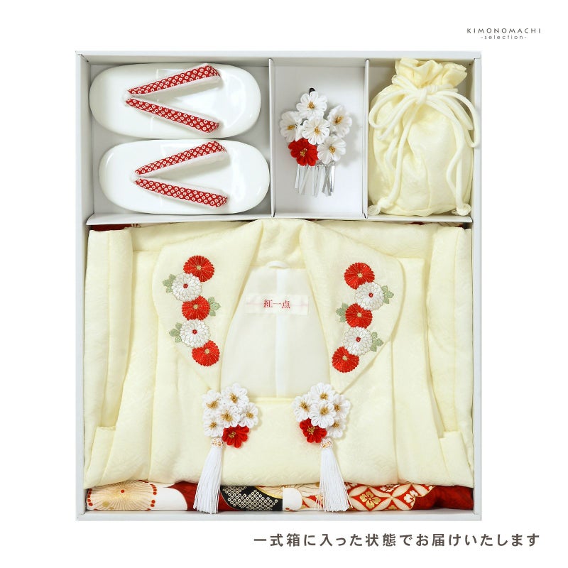 3歳の女の子の七五三に 女児用被布セット お正月やひなまつり(桃の節句)にも 七五三 着物 3歳 女の子 ブランド被布セット 紅一点「アイボリー、茜色 向かい鶴地に松、桜」三歳女児被布セット 子供着物 フルセット 三才のお祝い着 3才向け【メール便不可】