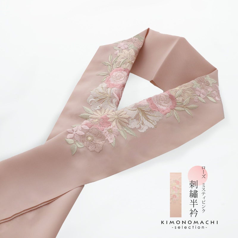 5. (成人式卒業式10%OFFCOUPON12/25迄)刺繍 半衿 単品 silelly シルエリー「ローズ ミスティピンク」日本製 刺繍半襟 振袖用半衿 前撮り 成人式 刺繍衿 ポリエステル半衿【メール便不可】